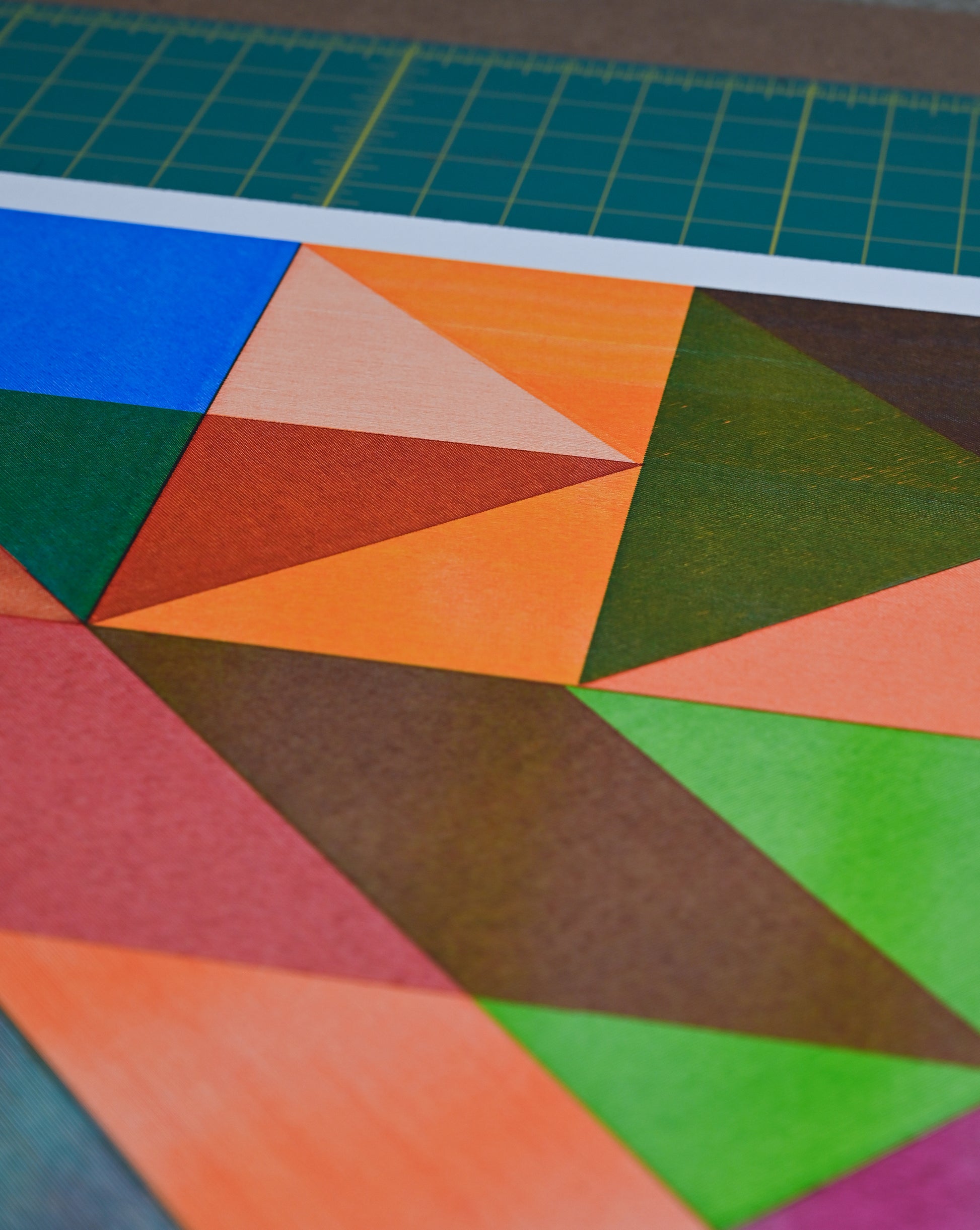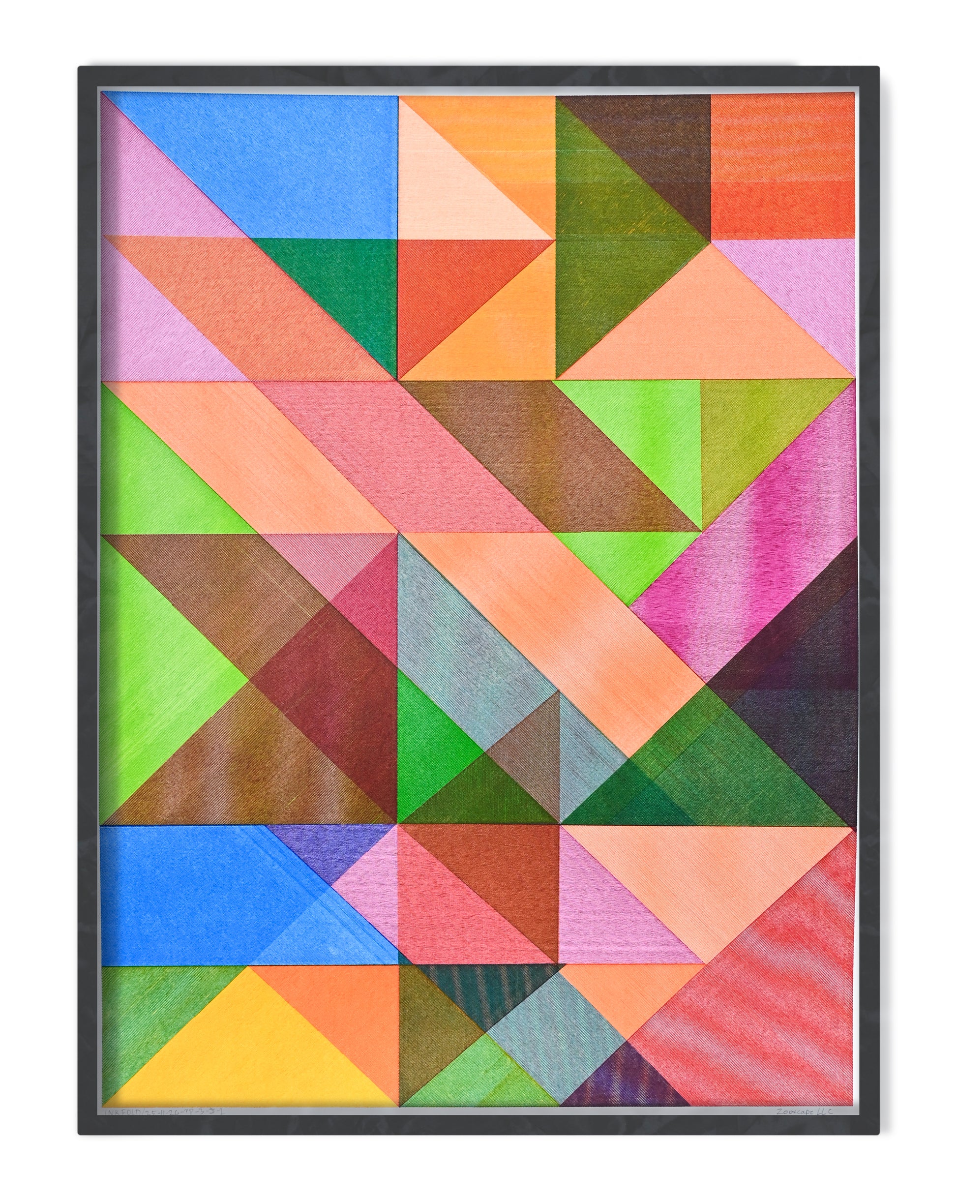 Ink Fold in Parallel is a pen plotter art creation and generative art print that embodies algorithmic art precision, exploring symmetry through overlapping gradients. Inspired by basic geometric shapes arranged at a 40° slant, their multicolored composition captivating and harmonious.