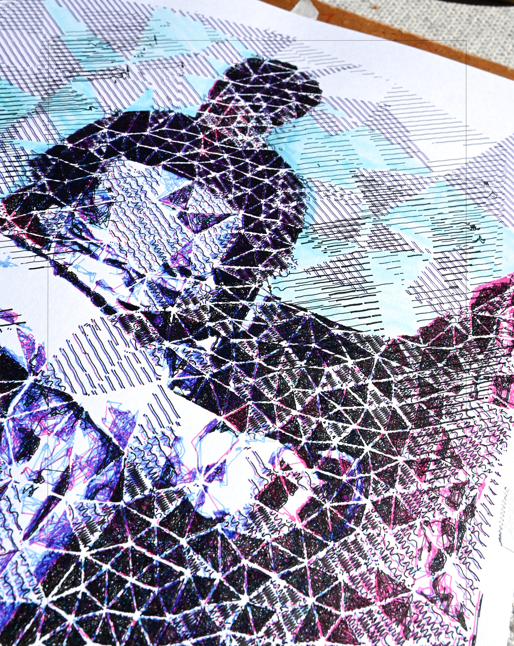Ink of the Mind is a pen plotter art creation and generative art print that embodies algorithmic art precision. Based on a photograph of a man deep in thought, it transforms reflection into triangulated forms, revealing the fragmented beauty of contemplation and gratitude.