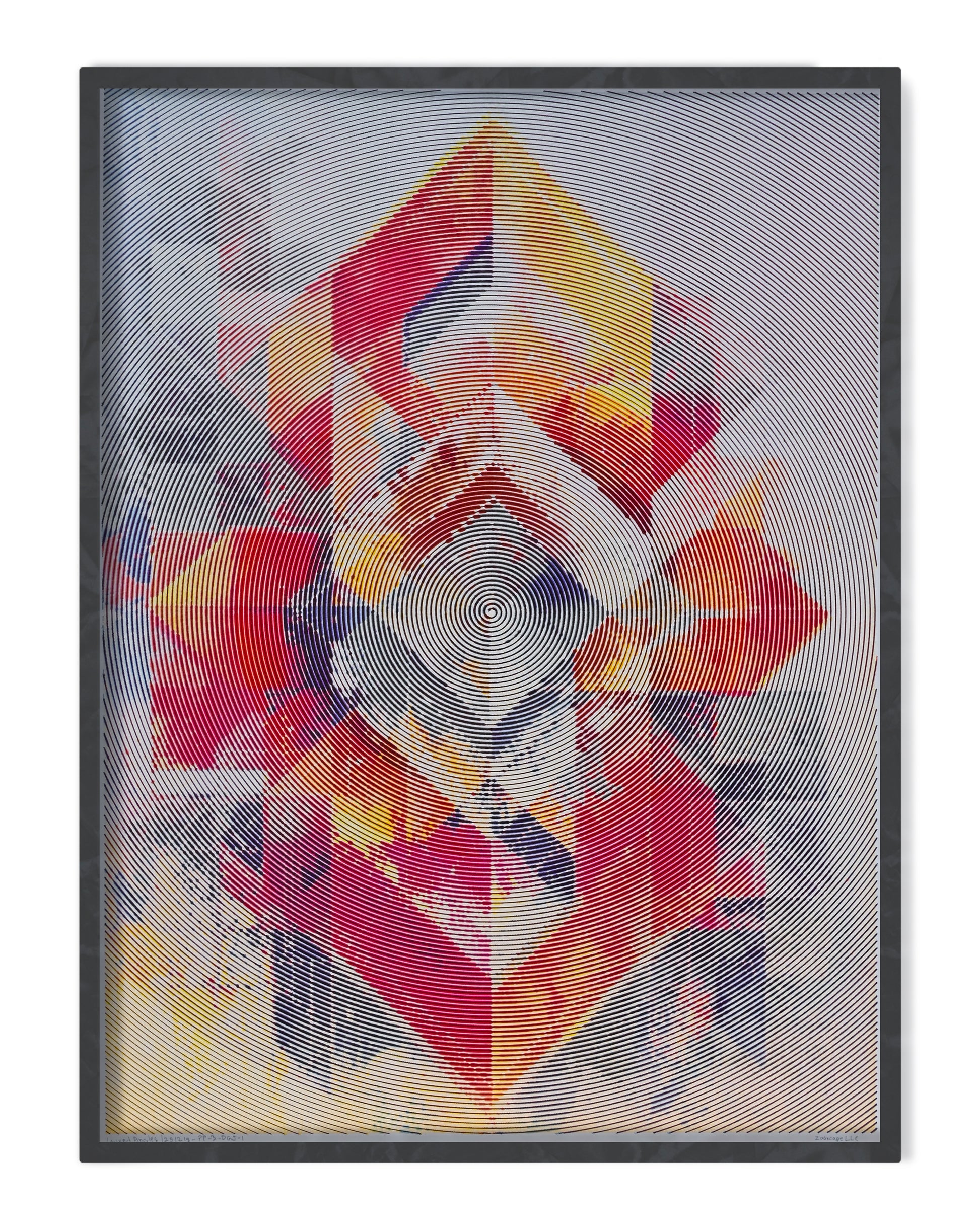 Layered Angles is a pen plotter art creation and algorithmic art print that embodies algorithmic art precision, exploring symmetry through overlapping gradients. Inspired by edgy geometric structures with a bold, angular style.